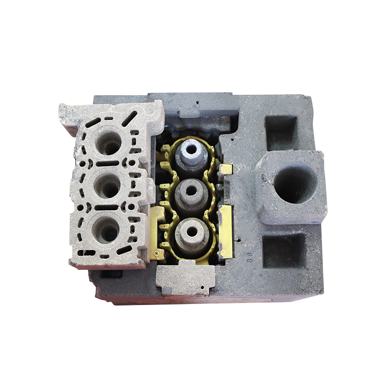 Vertikal gjutning-3 cylinderform är en typ av form som används i tillverkningsprocessen av gjutna metallprodukter. Den används specifikt för att tillverka ett metallgjutgods med tre cylindriska former. Formen är vanligtvis gjord av metall och består av tre cylindriska håligheter som är anordnade i en vertikal konfiguration. Metallgjutmaterialet hälls i toppen av formen och får sedan svalna och stelna. Efter att gjutgodset stelnat öppnas formen och det färdiga gjutgodset tas bort.